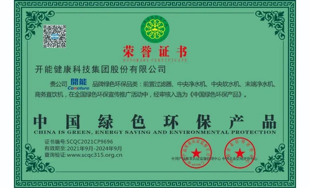 開能健康 | 踐行環(huán)保,榮獲“中國(guó)綠色環(huán)保產(chǎn)品”認(rèn)證證書