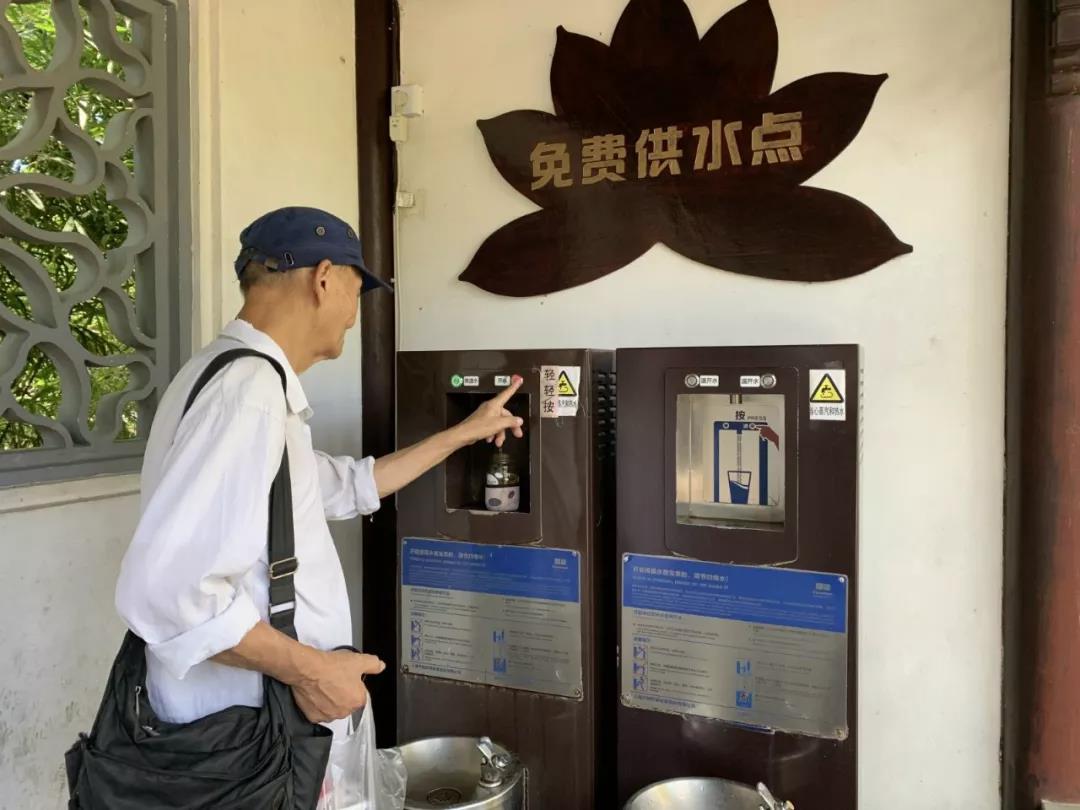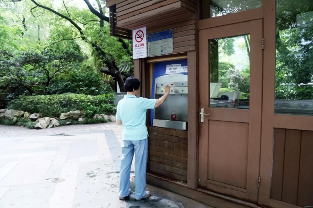 古猗園的開能公共飲水點,位于園區(qū)檢票入口邊的長廊上,設(shè)有直飲臺和接水口,能夠滿足不同方式飲水。