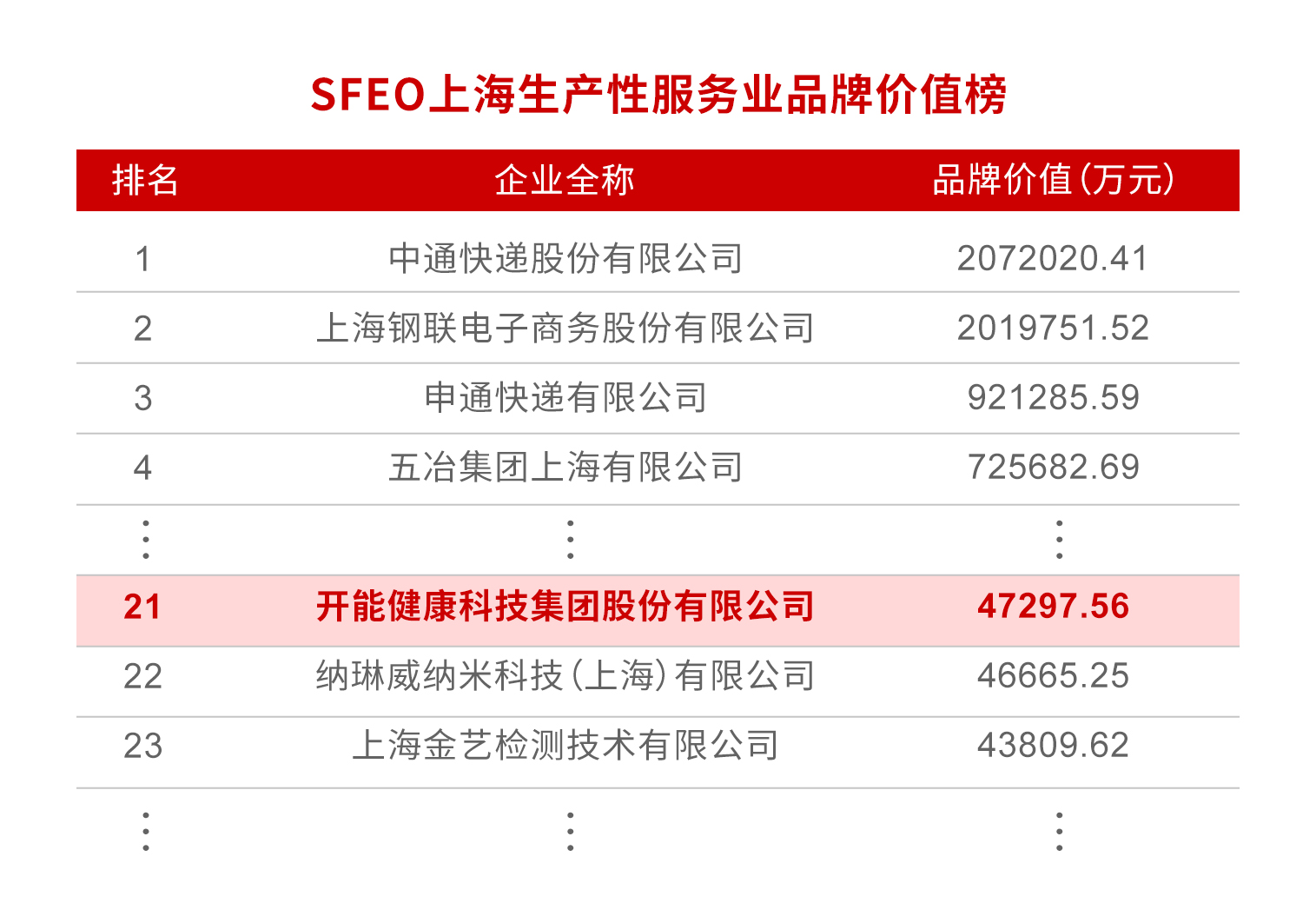 開能健康榮登SFEO上海生產性服務業品牌價值榜