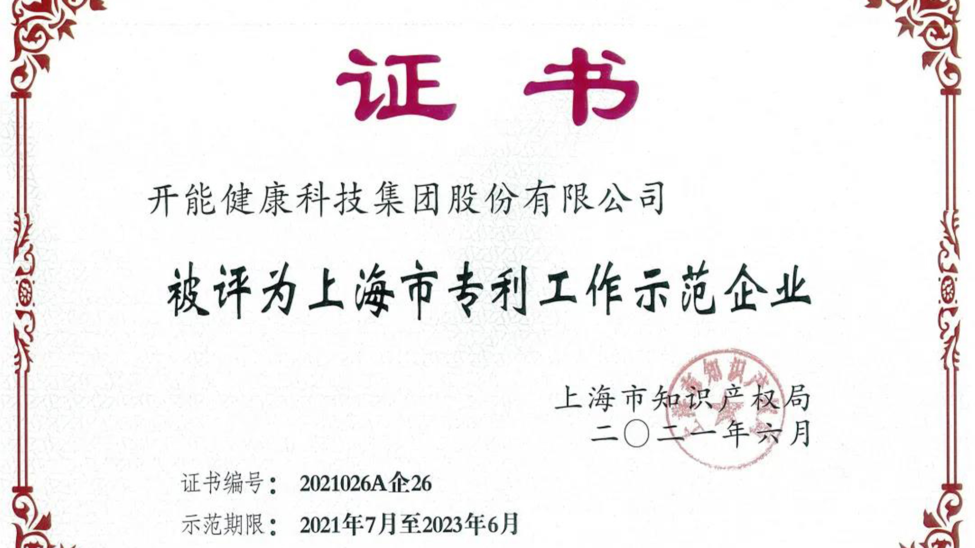 開能健康 | 馭創(chuàng)新之力,開能健康榮獲上海市專利工作示范企業(yè)榮譽稱號