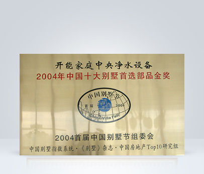 2004年開能家庭中央凈水設備榮獲中國十大別墅首選部品金獎