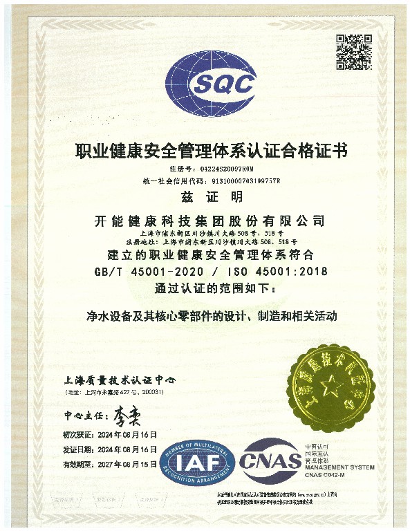 • ISO45001 職業(yè)健康安全管理體系證書(shū)